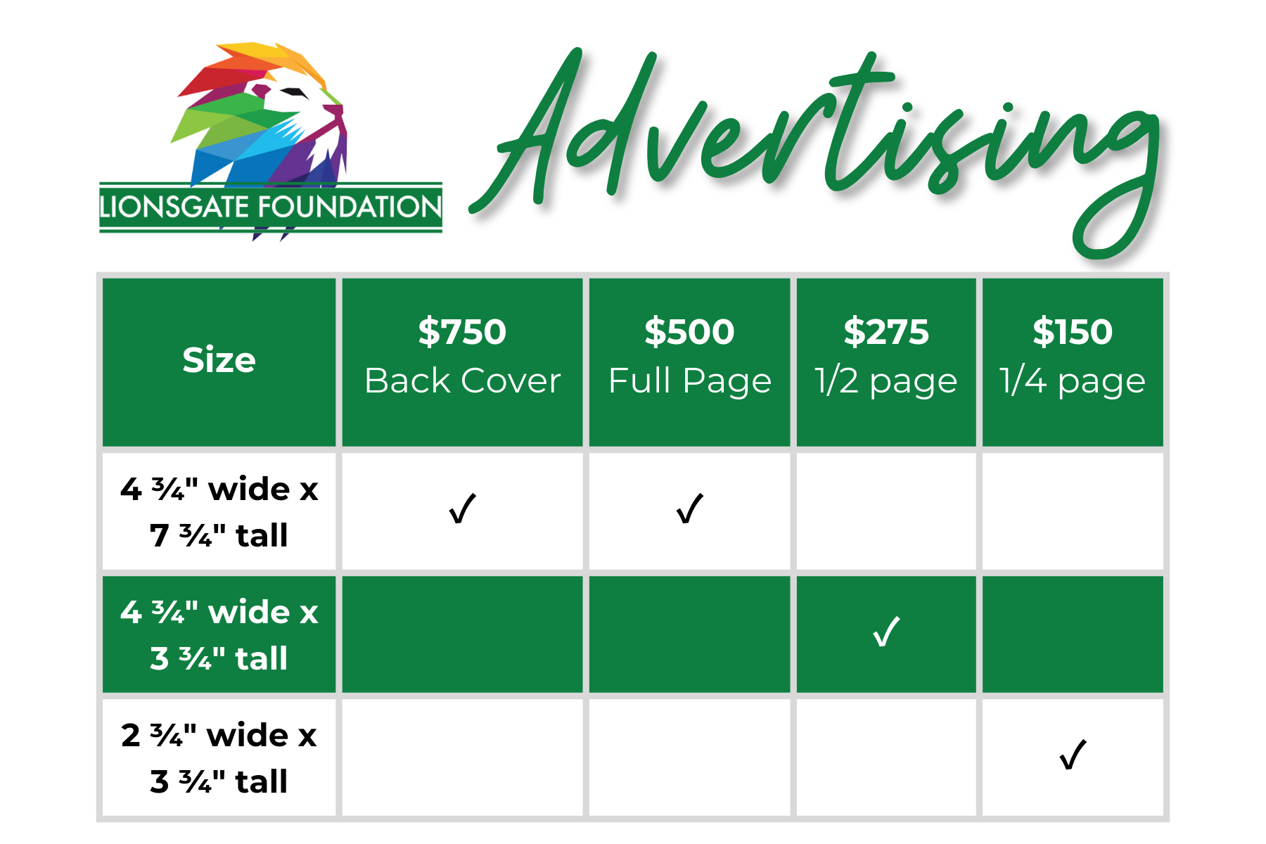 PLEASE NOTE: Advertising contributions are not considered tax-deductible donations.